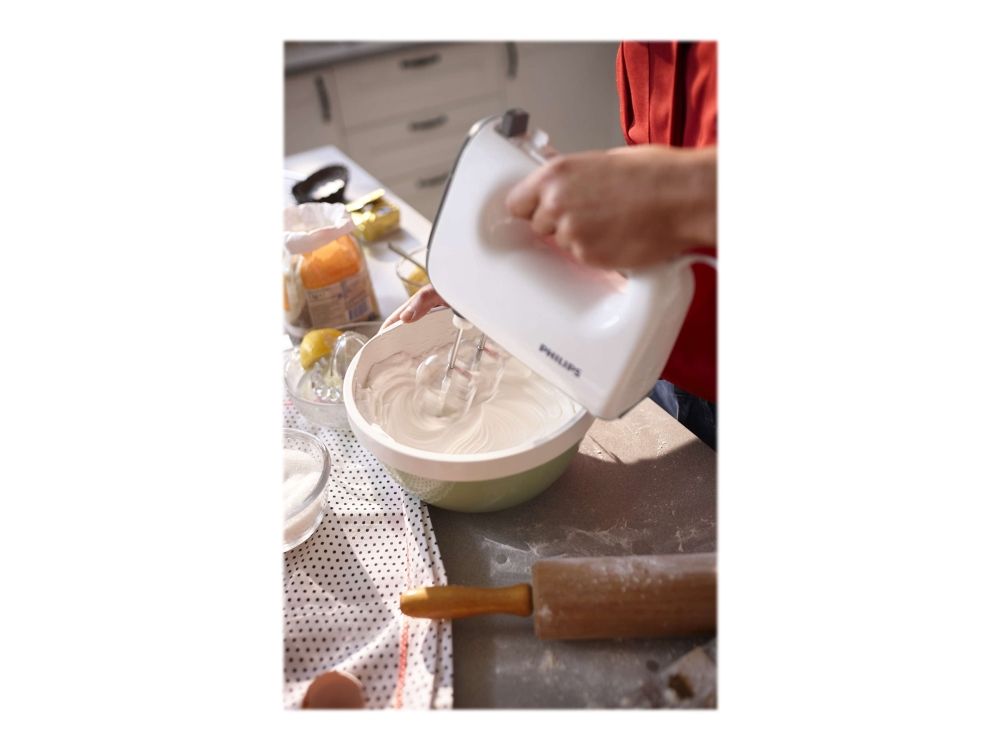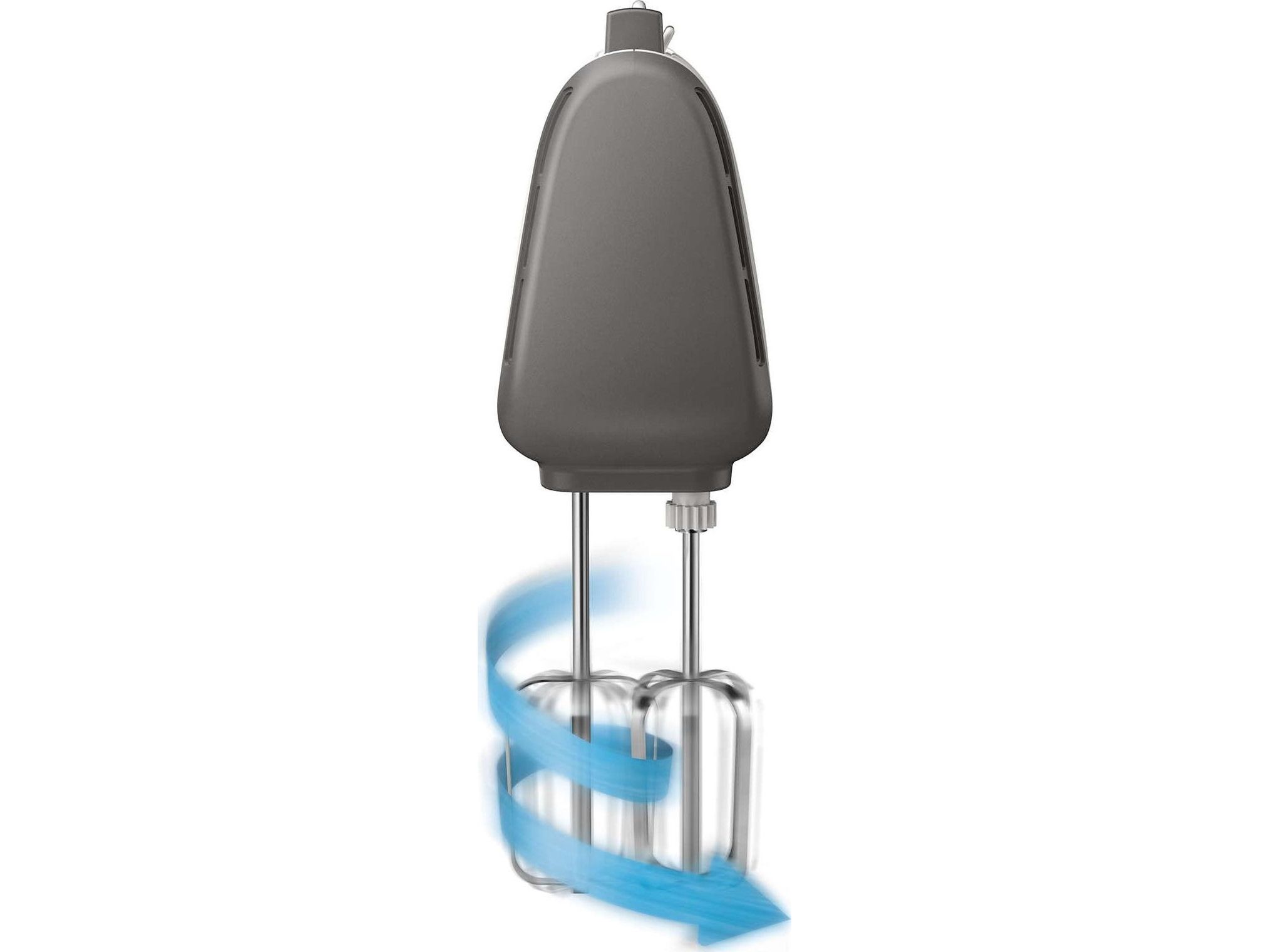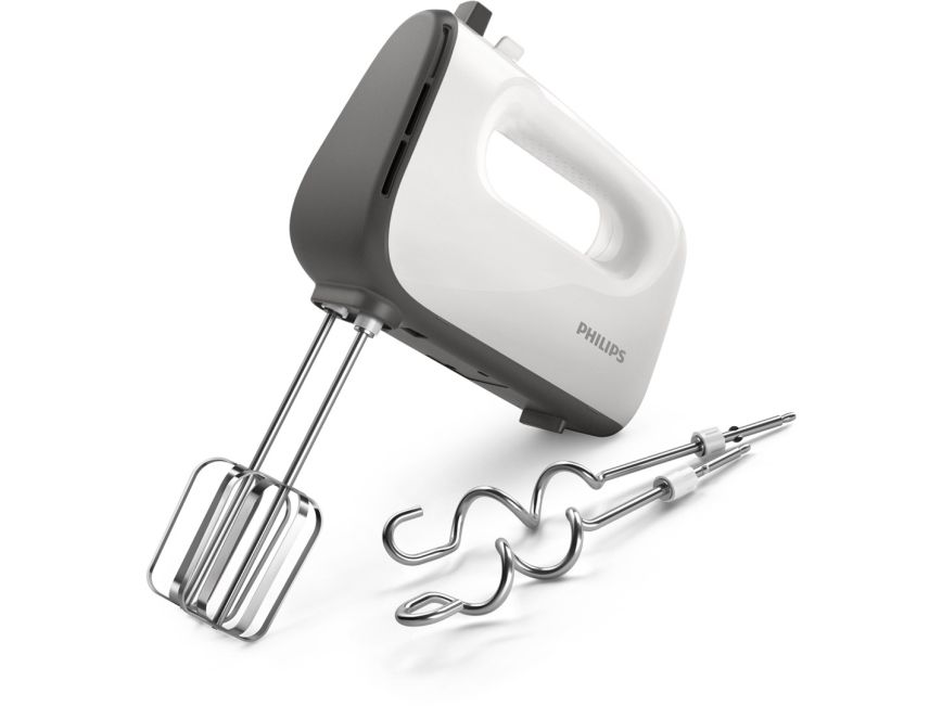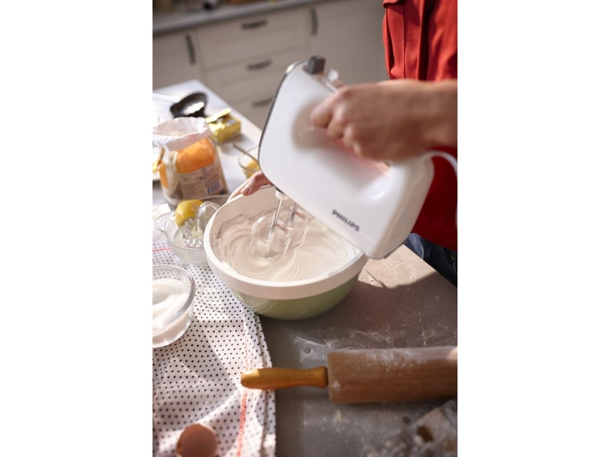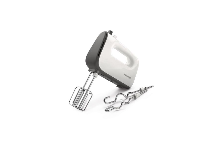 The Philips mixer helps you create delicious fluffy cakes, and breads for your family. Air conic mixing allows shorter whipping time and smoother cake batter. Its powerful 450 W motor will make light work of the toughest of doughs.