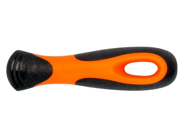 Ergonomischer Feilenhalter aus Zweikomponenten-Kunststoff mit hartem Polypropylen-Kern und weichem Thermoplast-Griff, der eine sichere Fixierung der Feile und einen angenehmen Griff ermöglicht. Speziell für rechteckige und halbrunde Feilen entwickelt, mit einem Schaftende, das beide Seiten abdeckt