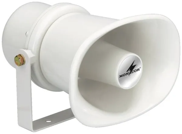 Horn speaker;#100 V transmission technology;#Weatherproof and IP66 tested;#Protected against powerful water jets;#Power selector switch;#For open-air events, industrial use, in workshops;;Manufacturer information:;MONACOR INTERNATIONAL GmbH & Co. KG Konsul-Smidt-Str. 68 28217 Bremen Germany [email protected]