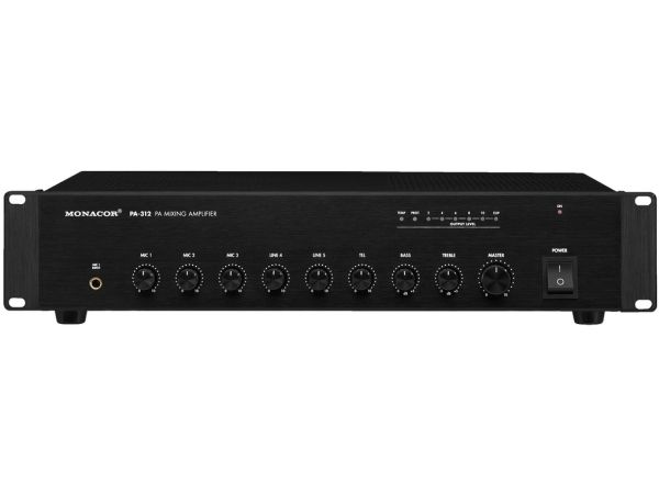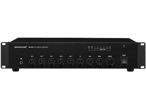 - 1 x 120 W - Geräuschloser Betrieb durch lüfterloses Kühlkonzept - 3 Mikrofon-Eingänge, davon 1 symmetrischer Eingang - Mic 1 mit Vorrangschaltung und regelbarem Auto-Talkover - 2 Aux-Eingänge - 1 Telefon-Eingang für Telefonzentralen mit Audioausgang - Lautsprecherausgänge über Schraubanschlüsse - 1 Line-Ausgang - Ein- und Ausgangspegelregler - 2-fach-Klangregelung für den Ausgang - 48-V-Phantomspeisung für Kanal 1, zuschaltbar - 482-mm-Rackeinbau (19") mit beiliegenden Montagewinkeln