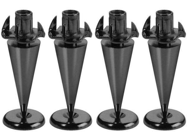 Set of speaker spikes (4 pcs.) - Extra slim version - Adjustable in height - With support disks and drive-in nuts - Black chromium-plated