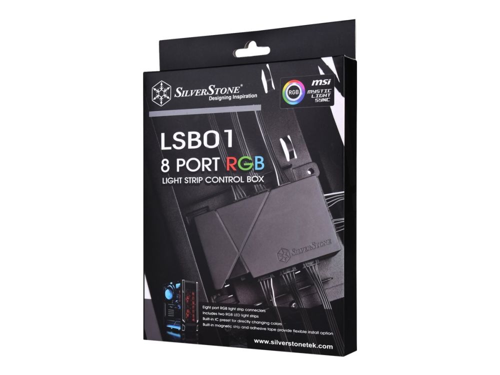 LSB01 is a SilverStone designed RGB light strip control box with 8 port signal control. For use in conjunction with SilverStone LS02, it easily expands the amount of lighting that one can control and solves the problem of insufficient RGB 4pin connectors. It can control light via motherboard RGB software or other RGB 4pin host. Apart from this, for those enthusiast‘s motherboard that lacks RGB 4pin or without another signal source, the LSB01 can still offer direct control via case switch with an included cable adapter.