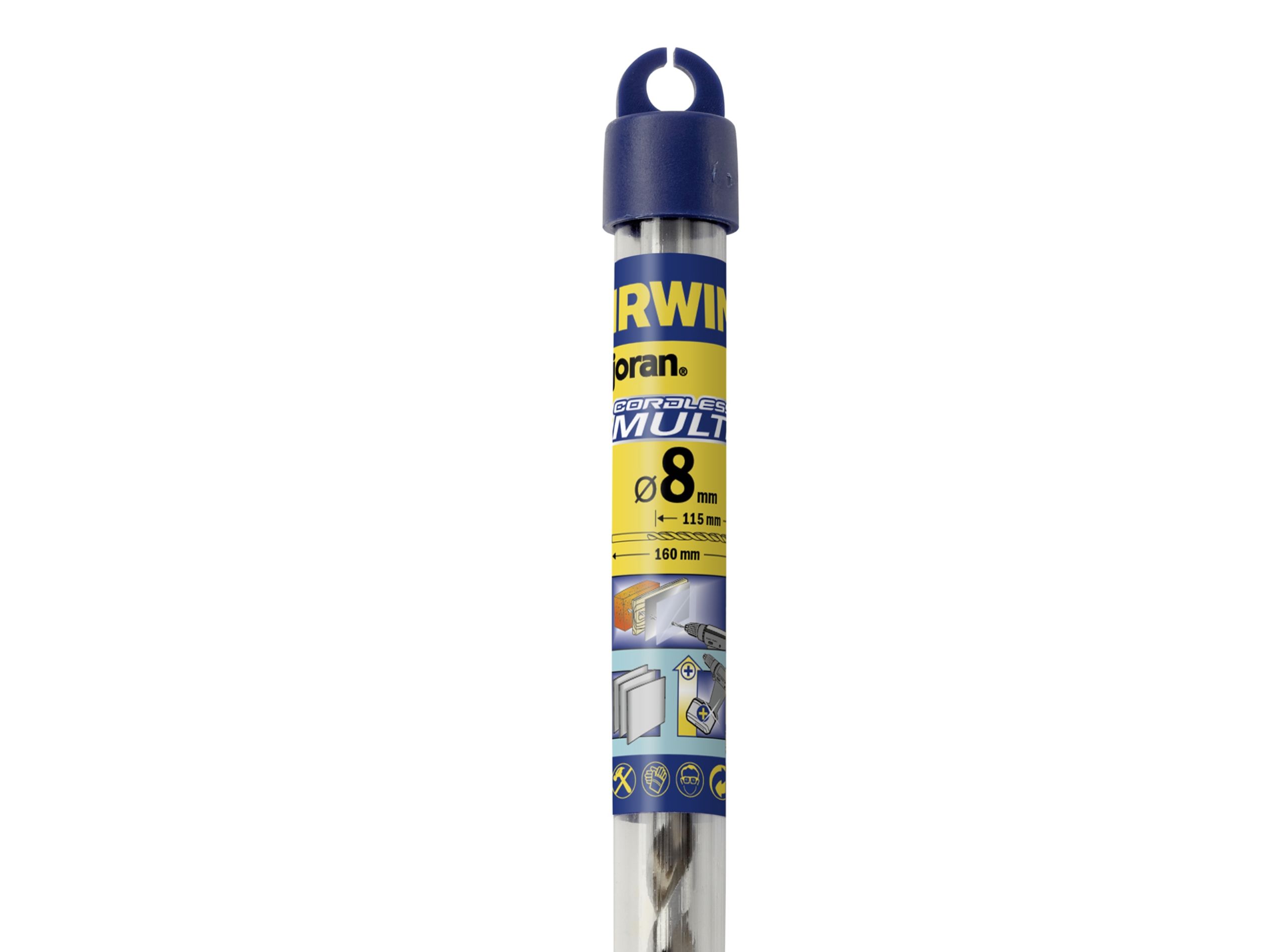 Designed for cordless low RPM multi-purpose drilling. IRWIN Cordless drill bits are ideal for drilling the most common materials, including: brickwork, breeze block, wood, dry wall, slate, plastics, sheet metal. For rotary drilling only - no hammer/percussion. The perfect drill bit for drilling ceramic tiles - doesn't walk or fail even in hardened floor tiles. Unique four-facet ground carbide tip for lower drilling pressure and perfect centring.