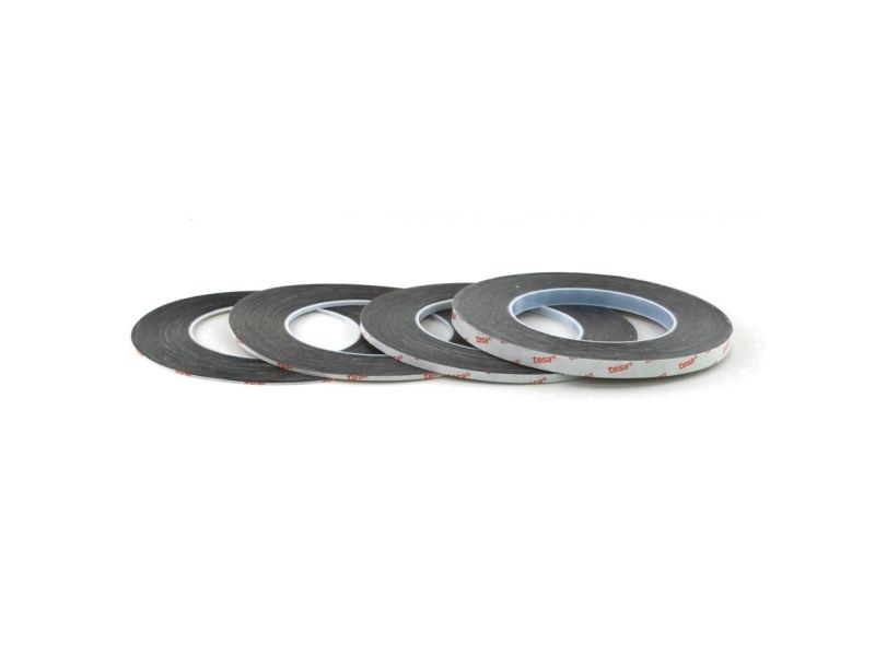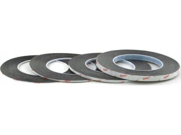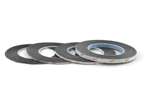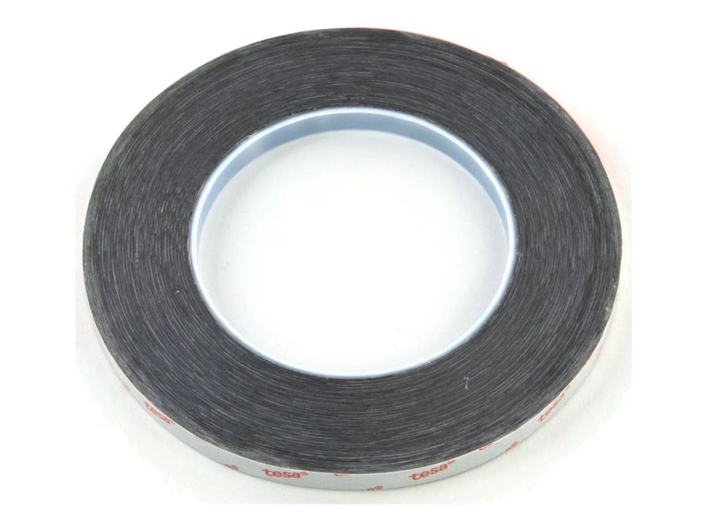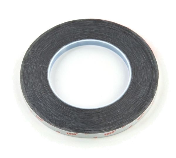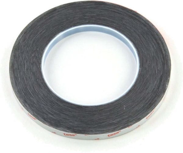 Tesa 61395 is a black, double sided self-adhesive tape consisting of a black PET backing and a tackified acrylic adhesive.