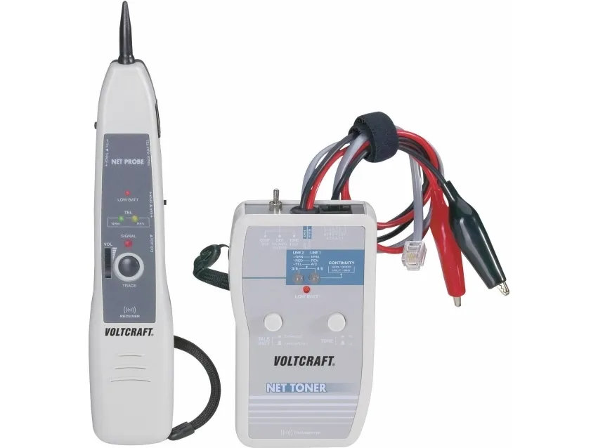Sender: Kapacitiv signalindkobling · Indstillelig signalstyrke · gennemgangstester · Netværkstest · Low Bat-visning. Modtager: Meget følsom forstærker · Indstillelig lydstyrke · Omskiftning fra højttalere til hovedtelefontilslutning · Telefonledningstest · Optisk og akustisk alarmmelding. Et praktisk søgeapparat til søgning og identificering af ledninger og kabler. Telefon- og netværksledninger (koaksial, 10/100/100 Base-T) kan desuden testes for rigtig kabelføring og gennemgang. LSG-3 består af en tonegenerator, som modulerer et højfrekvent signal på den ledning, der skal testes, og en meget følsom induktiv modtager, som pålideligt finder kabler, selvom de ligger 15 cm dybt inde i væggen. Sådan kan du præcist finde frem til, hvordan kablerne forløber. Meget følsom Ideel til netværks- og telekommunikationsinstallationer