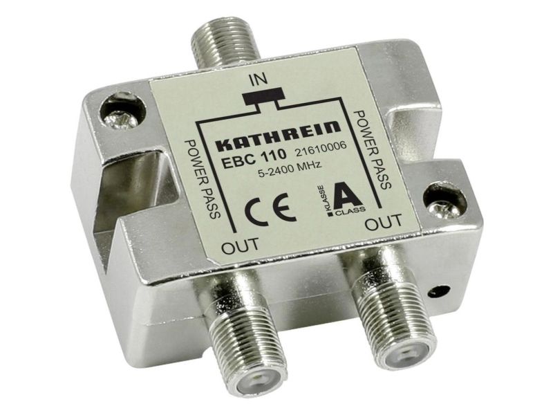- Speziell für den Einsatz in Einkabel-Systemen. - Frequenzbereich: 5-2400MHz. - Fernspeise-tauglich: Max. 24V; 0.5A. - Ohne Entkopplungsdioden, dadurch geringer Spannungsabfall. - Anschlüsse: F-Connectoren. - Anschluss für Potenzialausgleich. - Geringe Abmessungen. - Erfüllen: EN 60728-11 und EN 50083-2. - Für die Innenmontage.