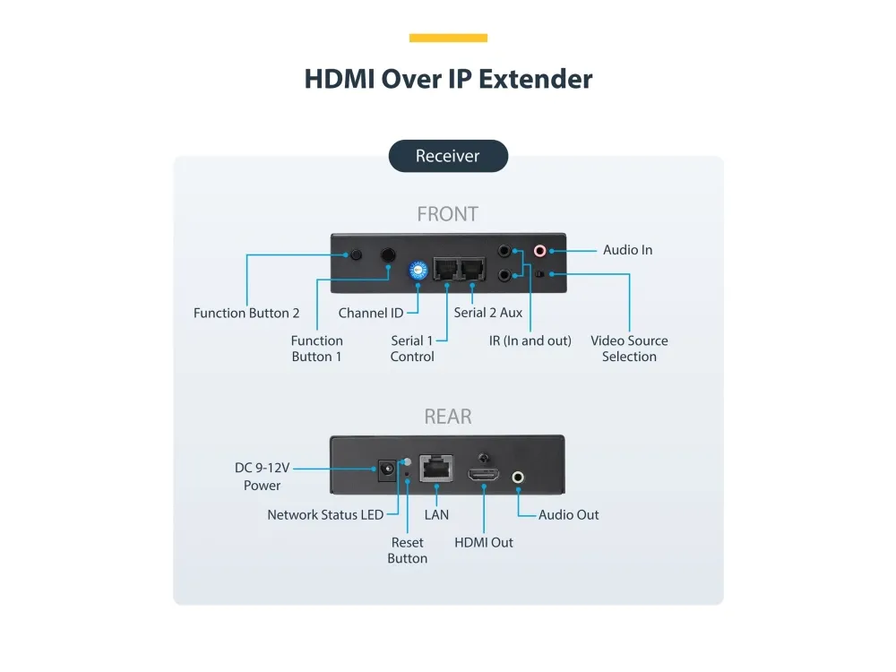 Für zusätzliche Skalierbarkeit können Sie bis zu 16 komplette Extender-Kits kombinieren. Der Extender verfügt zudem über eine separate 3,5-mm-Audioquelle, die Ihnen das Umschalten zwischen der nativen HDMI-Audioquelle und einer separaten 3,5-mm-Audioquelle ermöglicht. So können Sie eine einzelne Audioquelle über IP an mehrere entfernte Standorte weiterleiten.