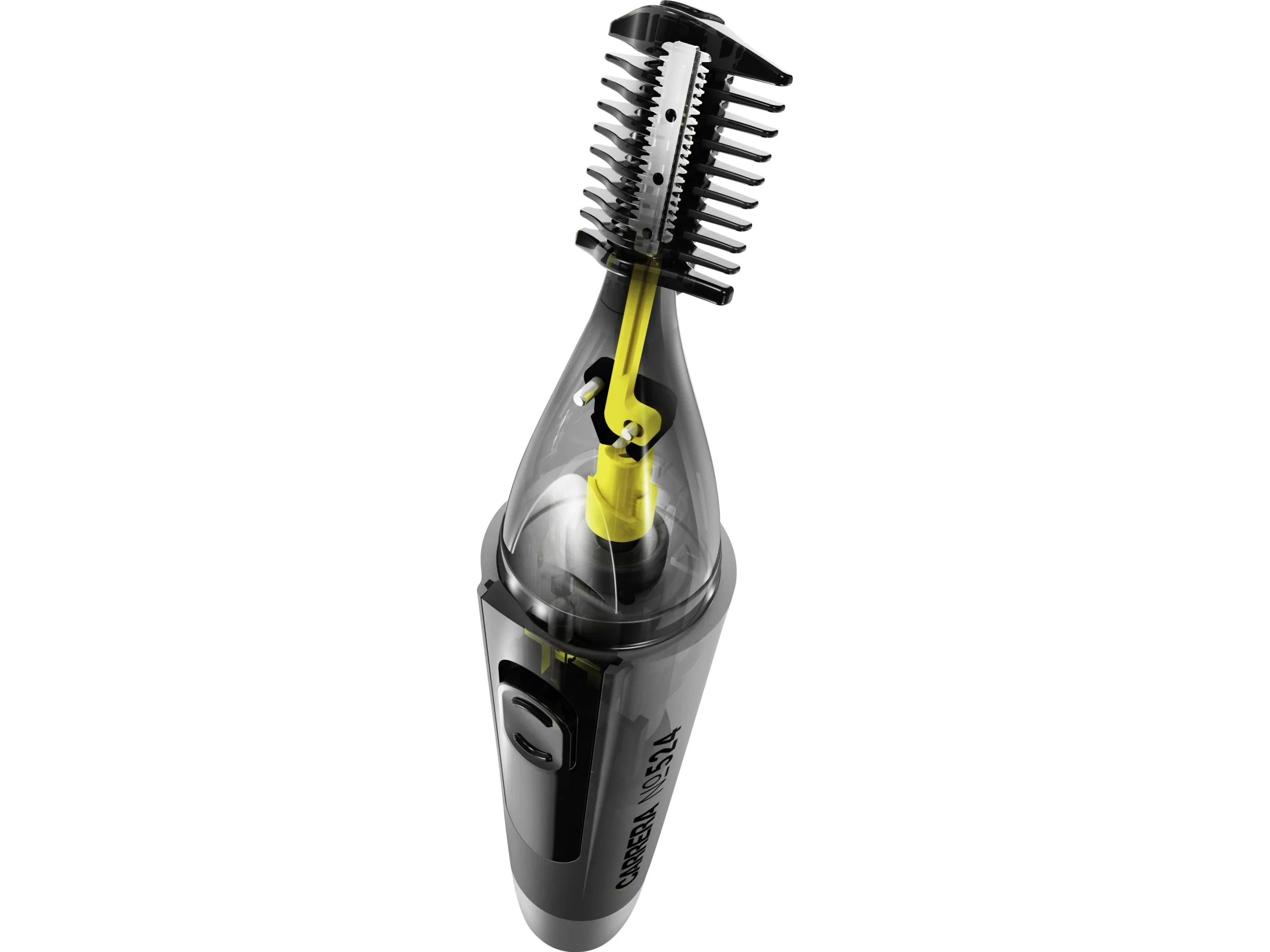 Wir lieben Details. Haben wir bestimmt schon mal gesagt. Aber diese Liebe hört bei der Verpackung nicht einfach auf. So präsentiert sich unser Nasen- und Ohrenhaartrimmer auf unserem CARRERA Gelb, aufgelockert mit etwas Text zu den wichtigsten Features.