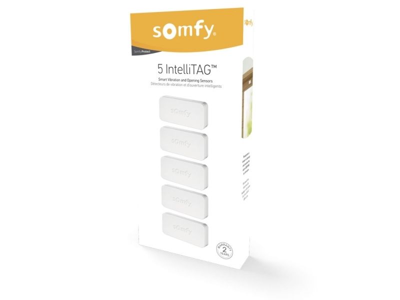 Pack of 5 IntelliTAG, vibration & opening detectors The IntelliTAG anti-intrusion detector can be stuck to your openings: doors, windows, patio doors... It analyses and differentiates normal vibrations (wind, ball, visitor knocking on the door...) from typical break-in vibrations (crowbar, hammer...) In the event of an attempt to force open, it triggers the alarm and warns you on your smartphone BEFORE the intruder has entered. Quick and easy installation: unlike other detectors on the market, the IntelliTAG is a single unit. The supplied double-sided adhesive makes it very easy to stick it on all the openings you want to protect: doors, windows, skylights, patio doors, garage doors, etc.