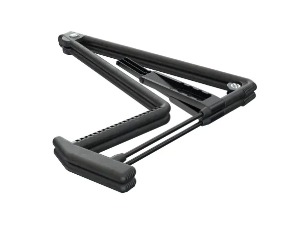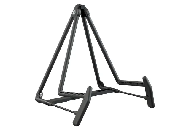 The completely revised world-renowned classic stand is presented in a new look. The instrument is particularly well cared for thanks to the elaborate new rubber structure. With the new innovative adjustable cross bar, guitars of different sizes or even other instruments such as a cello or French horn can be placed on the stand. For storage and transport the stand folds flat. In addition, we provide a practical transport lock. An additional feature includes integrated guitar pick holders. Heli 2 is available in black, red, blue and cork.