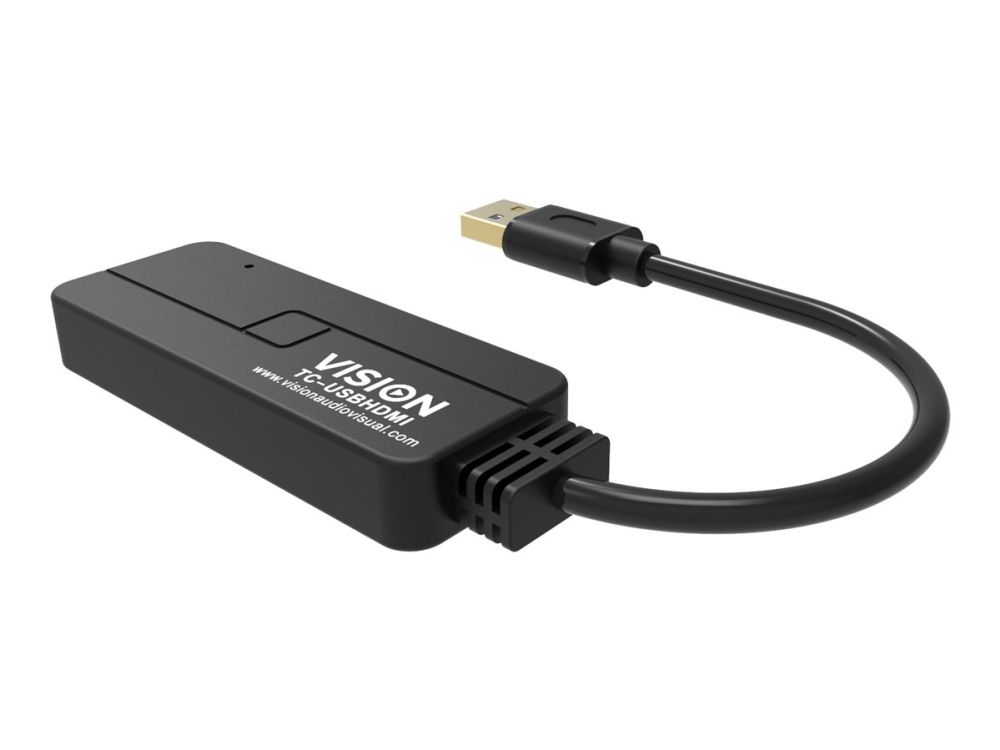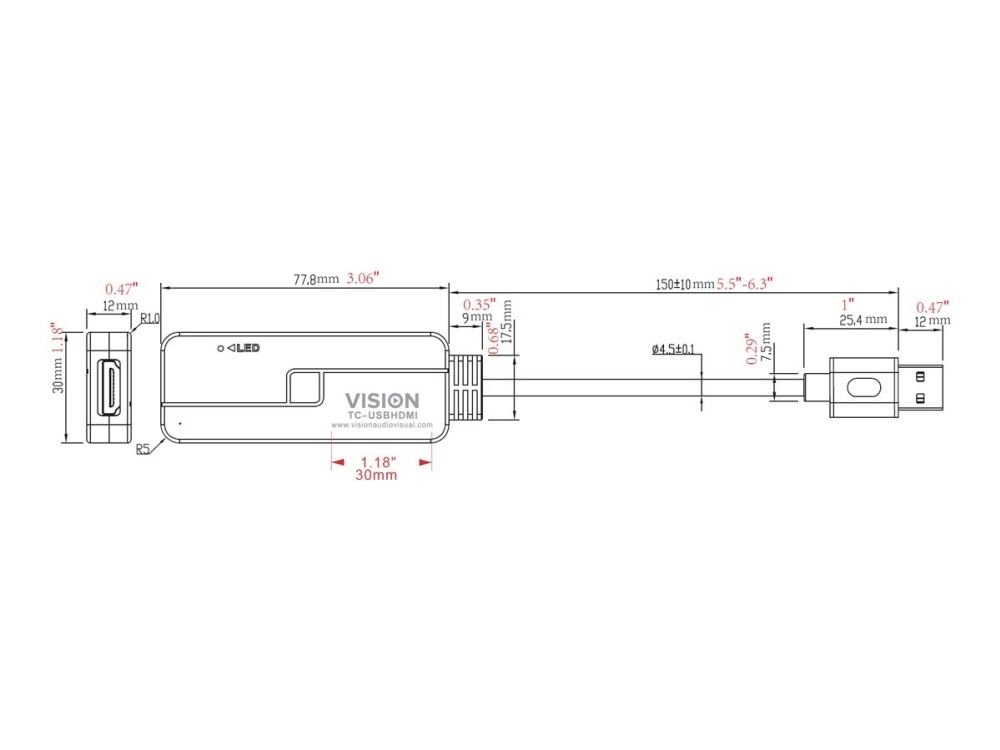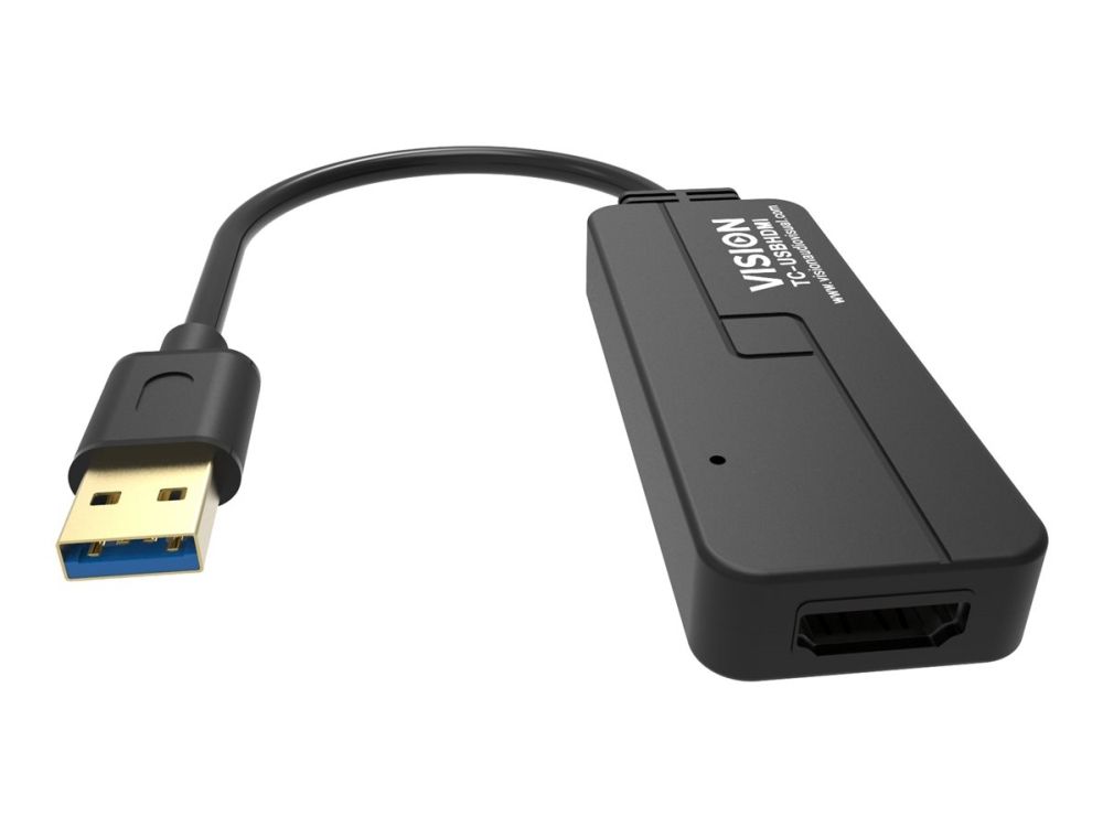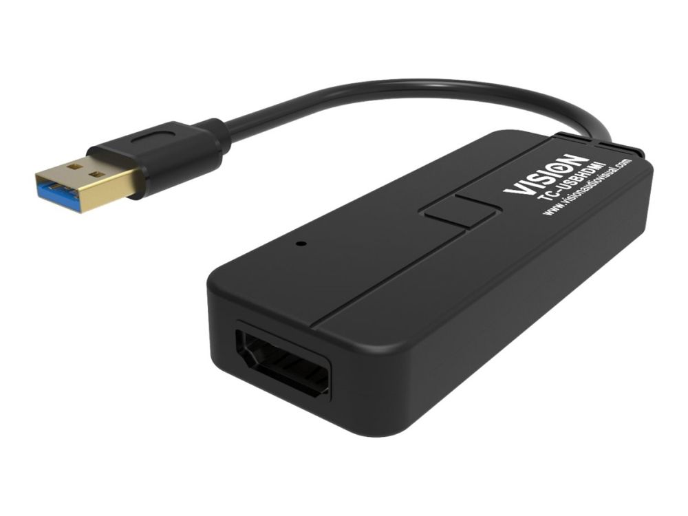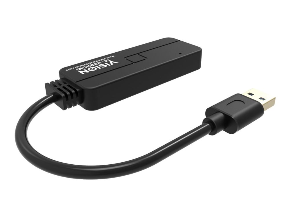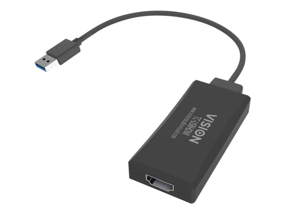 - HDMI (female) to USB-A (male) - Colour: Black - USB 3.0 cable - Extend or Mirror - Supports Audio - Windows only (No MacOS) - Backward compatible with USB 2.0 (max resolution 800 x 600) - Maximum Resolution: 1920 x 1080 (HD) @ 60 Hz - Nickel plated connectors - Overall Length: 260 mm (10.2?) - Compliance: CE, FCC - Packaged Weight: 0.05 kg (0.11 lb) - Product Weight: 0.035 kg (0.08 lb) - Packaged Dimensions: 220 mm x 170 mm (8.7? x 6.7?) - Retail packaging