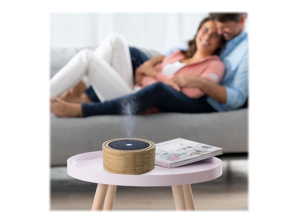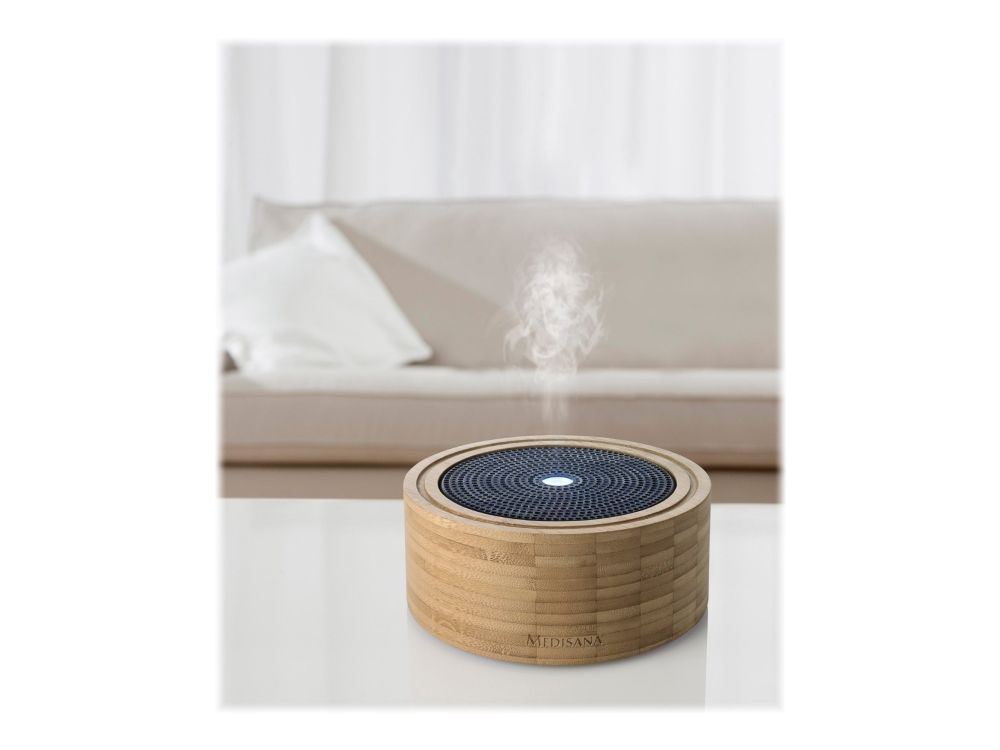 The aroma diffuser AD 625 combines wellness and well-being for the senses. It convinces especially with its simple design and is an eye-catcher in any living ambience due to its high-quality bamboo look. Thanks to its modern ultrasound technology, the Aroma Diffuser AD 625 creates a fine mist of fragrance, through which the beneficial fragrances are distributed evenly and discreetly throughout the room. Whether relaxing and calming or stimulating and vitalizing - there is a suitable fragrance for every occasion and every season. The gently changing wellness light in six colors ensures a positive mood - a pleasant feel-good atmosphere within your home.