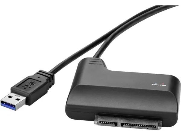 USB-Konverter für den Betrieb von SATA Laufwerken - ohne Einbau Um ausgebaute Festplatten an einem PC oder Notebook betreiben zu können, müssen die Festplatten intern in den Computer eingebaut werden. Dies ist sehr mühsam und zeitraubend. Dieser Festplatten-Konverter erlaubt den einfachen und unkomplizierten Anschluss von externen Laufwerken am USB 3.0 Anschluss des PCs oder Notebooks - ohne das Laufwerk erst in ein Gehäuse einbauen zu müssen.