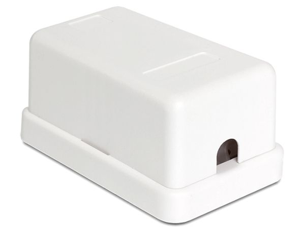 Dieses Leergehäuse von Delock können Sie als Verteilerdose an der Wand oder in Gehäusen verwenden. Durch die standardisierten Abmessungen ist es zur einfachen Snap-In Montage von einem Keystone Modul geeignet.