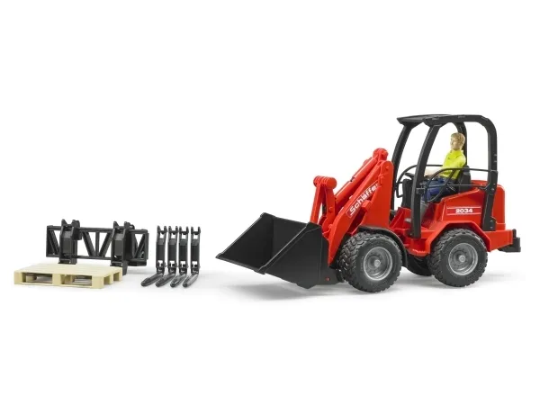 Seit über 50 Jahren entwickelt Schäffer Radlader für Landwirtschaft, Industrie, sowie Garten und Landschaftsbau. Der Schäffer Lader ist für hohe Förderleistung bei beengten Räumen konzipiert und bestens geeignet. Dieses wichtige und überzeugend vielseitige Fahrzeug für jede erfolgreiche Landwirtschaft ist nun neu im Maßstab 1:16 in die Bruder Kollektion hinzugekommen. Für maximale Wendigkeit besitzt das Fahrzeug, wie auch das Original, eine funktionierende Knicklenkung und auch der Ladearm und Schaufel funktionieren wie beim großen Vorbild. Für die Sicherheit der bworld Figur, welche bequem in den Fahrersitz passt, ist ein massiver Überrollbügel vorhanden. Die passende, bewegliche Figur, sowie ein Zubehörset, bestehend aus Ladegabeln und einer Palette runden dieses tolle Fahrzeug ab und sorgen für maximalen Spielspaß.