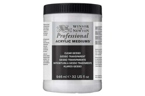 Ein Gesso aus unpigmentiertem, klarem Harz, das völlig klar trocknet und durch Zugabe von Acrylfarben zur Herstellung von farbigen Gesso-Grundierungen verwendet werden kann