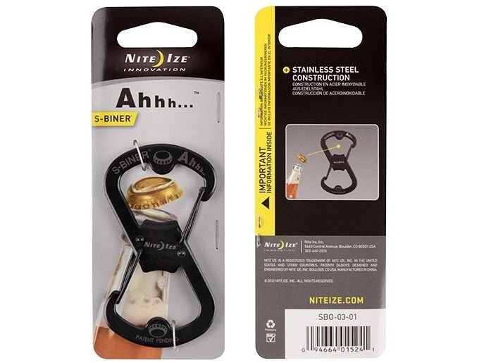 Like our classic S-Biner, both ends of the S-Biner Ahhh feature sturdy gate closures, making it a multifunctional carabiner that you can use to attach and carry keys, water bottles, and camping gear; hang lanterns and lights; or clip two items together. But we didn't name this little puppy the "Ahhh" for nothing - both ends function as bottle openers, too. That means that when you carry the S-Biner Ahhh wherever you go, you'll always be able to pop open a bottle of your favorite beverage, making you the envy of thirsty people everywhere.