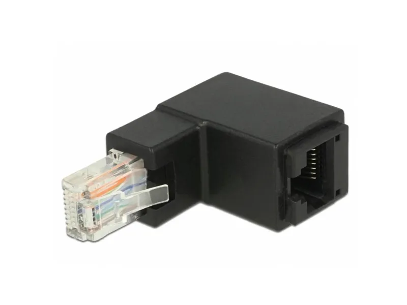Kurzbeschreibung Mit diesem Adapter von Delock kann die RJ45 Buchse eines Gerätes um 90° abgewinkelt werden. Dies erleichtert den Anschluss eines Netzwerkkabels an schwer zugänglichen Stellen.
