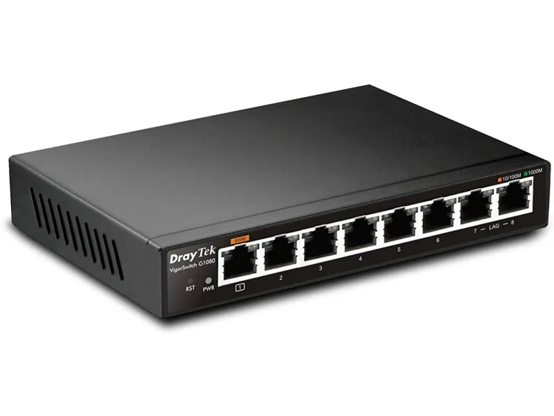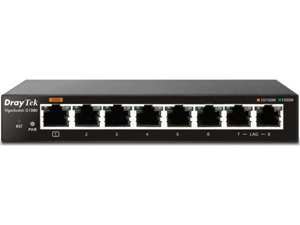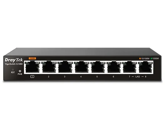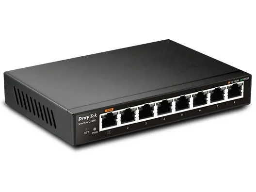 The VigorSwitch G1080 is ideal for SOHO and small business with the high-performance capability. To cater for high bandwidth traffic, it is equipped with 8 Gigabit Ethernet ports. VigorSwitch G1080 is equipped with extensive facilities for maximizing your LAN performance, VLAN capability to allow flexible network configuration and QoS capability for flexible bandwidth control.