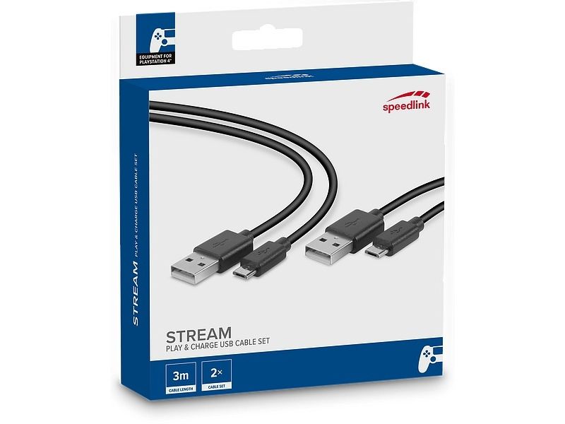 Mit den STREAM USB-Kabeln kannst du 2 PS4®-Controller auf einmal laden und gleichzeitig spielen. Die 3 Meter langen Kabel eignen sich auch für die Datenübertragung und das Laden von Smartphones mit Mikro-USB Anschluss.
