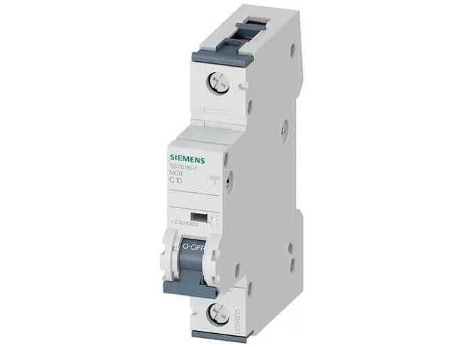 Ledningsbeskyttelseskontakt, 230/400 V, ICN: 6 kA, 1P, ICU: 15 kA, C-Char, In: 10 A. Ledningsbeskyttelseskobling 230/400V 6kA, 1-polet, C, 10A, T=70 mm. Ledningsafbryderen er sikringsautomaten til kortslutningsbeskyttelse. Ledningsafbryderen fra Siemens som vigtig del af SENTRON. Beskyttelseskomponenter til el-installationer giver effektiv person- og anlægsbeskyttelse med sikker frakobling i tilfælde af overbelastning og kortslutning. Komfortabel montage- og tilslutningsteknik, ensartede ekstrakomponenter og et ensartet design - det er kendetegnet for denne enhedsfamilie. Uanset om det er til infrastruktur eller til industrielle krav, Siemens giver automatsikring til alle anvendelser og enhver type opgave. Siemens automatsikringen udmærker sig især ved: 1. Effektiv person- og anlægsbeskyttelse mod overbelastning og kortslutning. 2. Ensartet tilbehør i et bredt udvalg der er let at montere og til enhver tid kan udskiftes. 3. Pålidelig sikkerhed ved installation takket være standardmæssigt integreret o