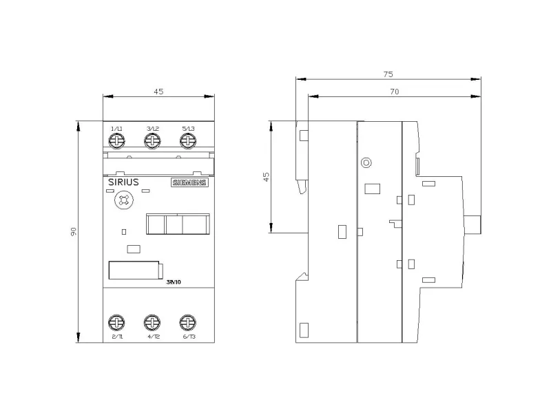 Siemens 3RV1011-0KA10 Leitungsschutzschalter 1 St. 3 x Leitungsschutzschalter Einstellbereich (Strom): 0,9 - 1,25 A Schaltspannung (max.): 690 V/AC (B x H x T) 45 x 90 x 81 mm