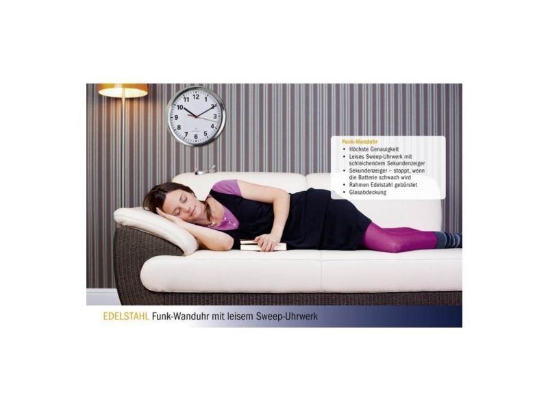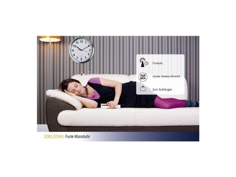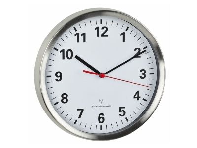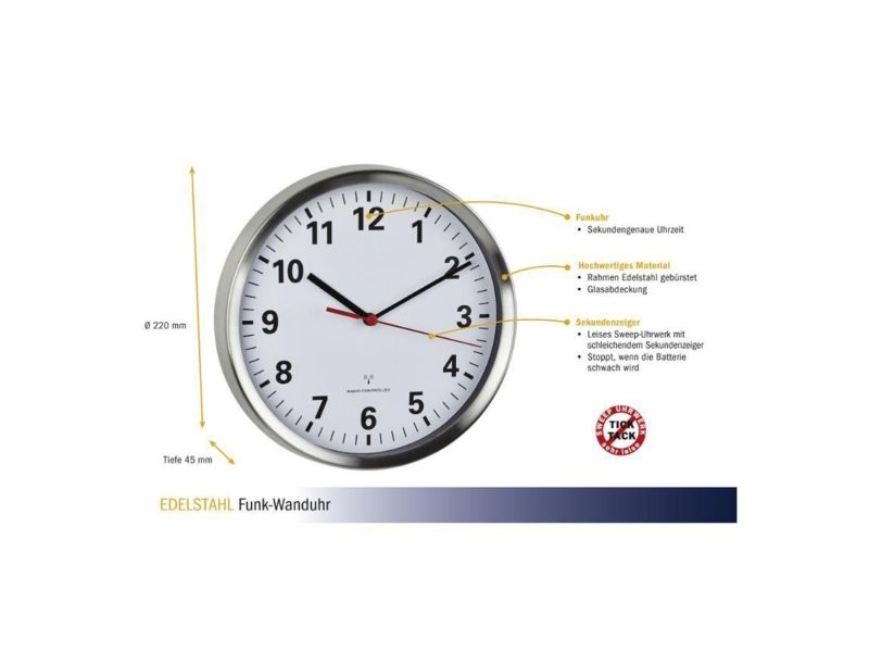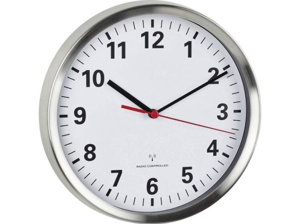 TFA-Dostmann Analoge Funk-Wanduhr mit Edelstahl-Rahmen, Wand, Quartz clock, Rund, Silber, Weiß, Edelstahl, Glas