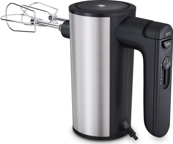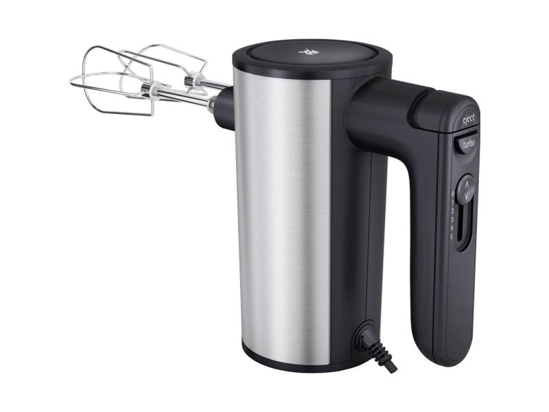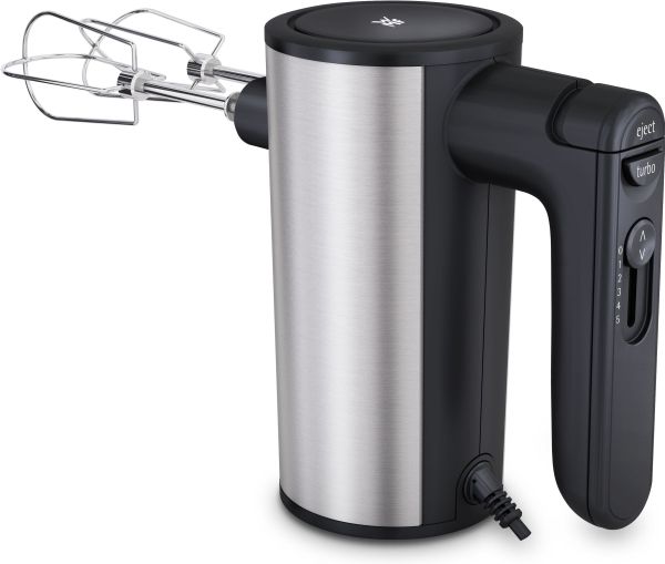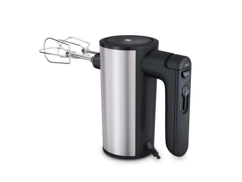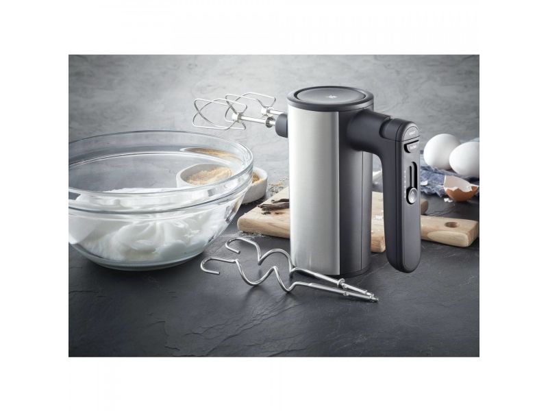 Ein Handmixer, der optisch und technisch Eindruck macht. Das stilvolle Design mit edlen Cromargan® Flächen und hochwertigen Kunststoff-Elementen ist typisch für die KULT X Edition. Fünf Geschwindigkeitsstufen sorgen für einen perfekten, glatten Teig. Selbst zähe Hefeteige sind dank der 400 Watt Leistung kein Problem. Und für Eischnee und Sahne schaltet man einfach den Turbo ein. Alle Funktionen sind gut mit einer Hand zu bedienen, so dass man die andere Hand an der Schüssel lassen kann. Knethaken und Rührbesen natürlich inklusive.