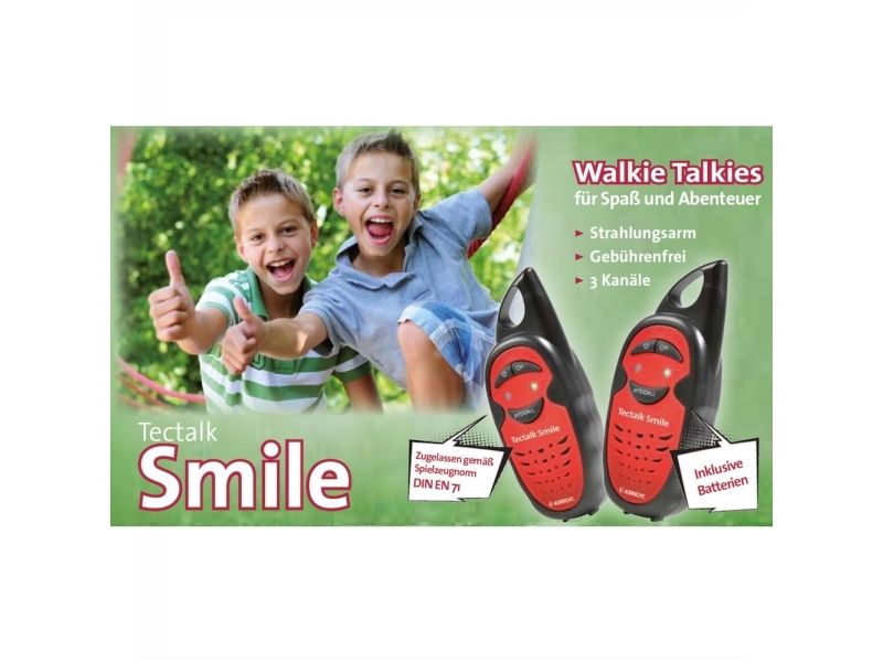 Für den ungestörten Funkspaß stehen drei codierte Kanäle zur Auswahl. Gebühren wie bei einem Mobiltelefon fallen bei den Sprechfunkgeräten weder im Inland noch im Ausland an. Das Albrecht Tectalk Smile erfüllt alle Sicherheitsbestimmungen für Spielwaren nach den Vorgaben DIN EN71 sowie DIN EN62115.
