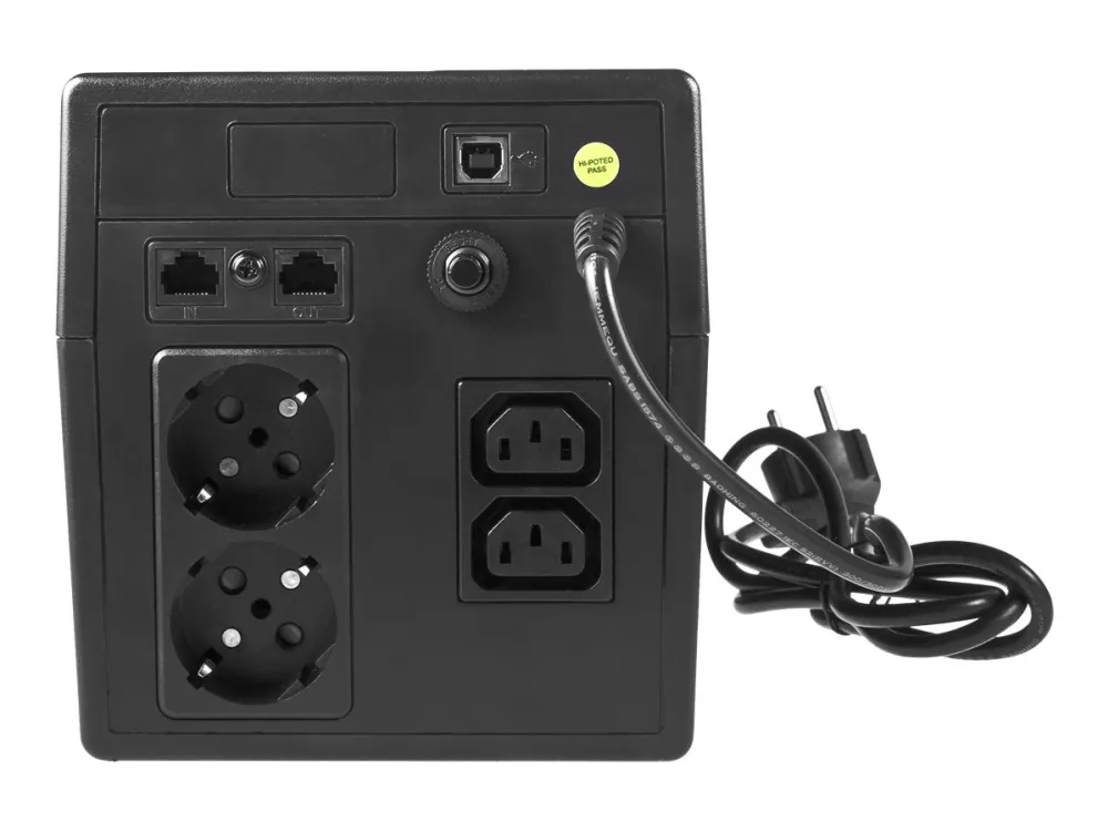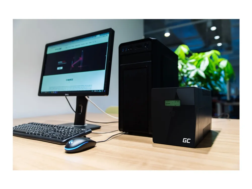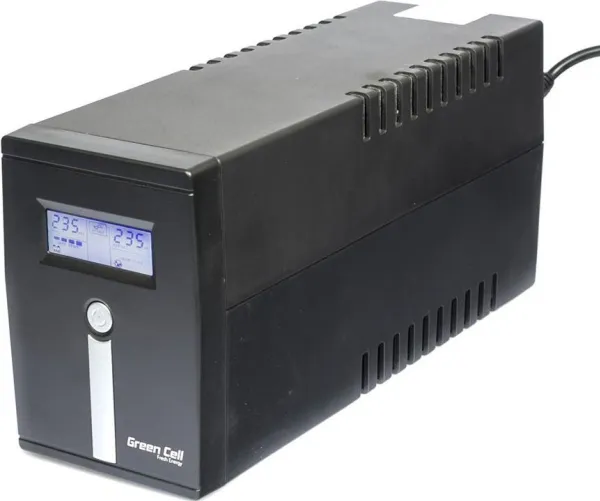 The Green Cell Micropower 1000VA UPS is designed to provide reliable power protection and ensure the smooth operation of your devices. With a power capacity of 1000 VA and an output waveform of modified sine wave, this UPS safeguards your equipment from unexpected power disturbances. The unit features Automatic Voltage Regulation (AVR) to maintain steady voltage levels, ensuring that sensitive electronics remain protected against fluctuations. Equipped with a 12 V battery system and a transfer time of 2 ms, this external UPS is ideal for homes and small offices requiring consistent power supply. Four output connectors and a single management interface via a 4-pin USB Type-B connector enable ease of use and effective monitoring. Manage your power delivery through the remote management interface for efficiency, while the UPS's ability to support various input voltages makes it versatile for different electrical setups. The dual battery system with a capacity of 7 Ah ensures prolonged operation during a power outage, providing peace of mind for users relying on uninterrupted power for their critical devices.