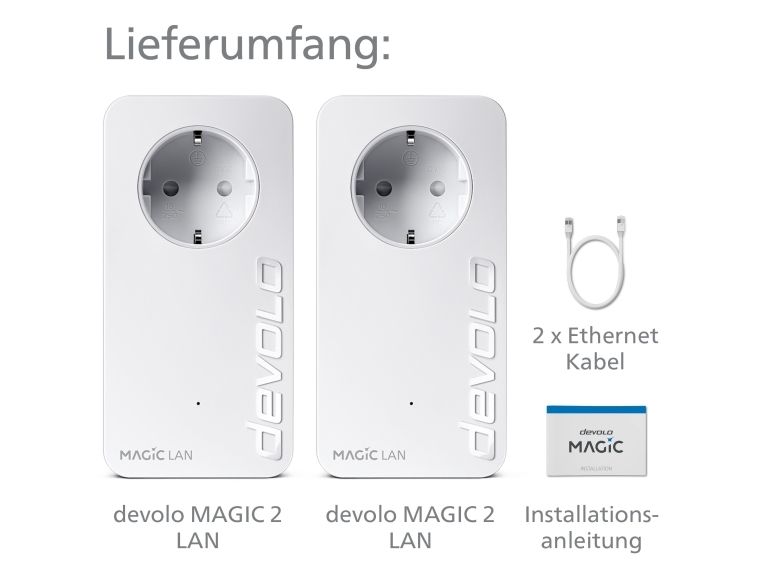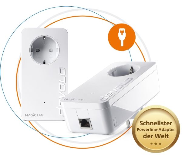 Einfach schnell und flexibel – mit devolo Magic 2 LAN wird Ihr Alltag multimedial. Der innovative Powerline-Adapter bringt Ihnen das Internet in High Speed direkt in Ihr Zuhause, vom Keller bis ins Dachgeschoss, ganz einfach über die Steckdose: Stecken Sie die devolo Magic-Adapter einfach ein und verbinden Sie diese. Dank des smarten Plug & Play kommt stabiles Internet aus der Steckdose ohne kompliziertes Konfigurieren im Nu dorthin, wo Sie möchten.