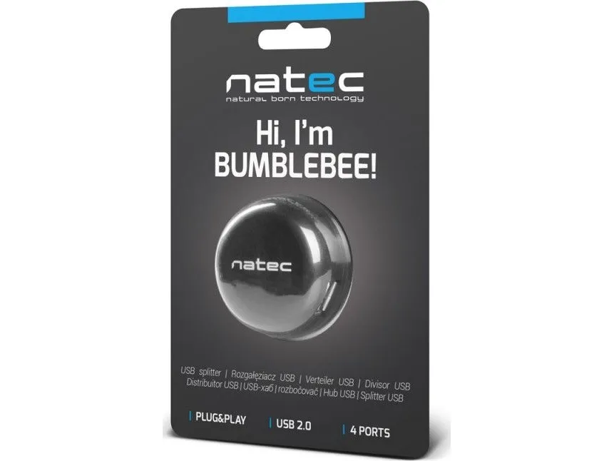 USB PORTABLE CAPACITY The Natec Bumblebee USB Hub has 4 USB inputs. Now all of our devices can be connected to one HUB, thanks to which we save entries in the computer and we have free access to connected devices.