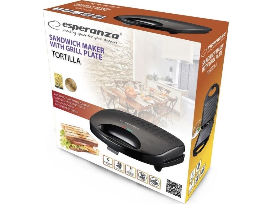 Sandwich maker TORTILLA with plates coated with non-stick surface, it's easy to clean just with a paper. The fast heating process allows you to have your desired sandwiches in few minutes. If you want to have very tasty sandwich every morning, please fell invited.