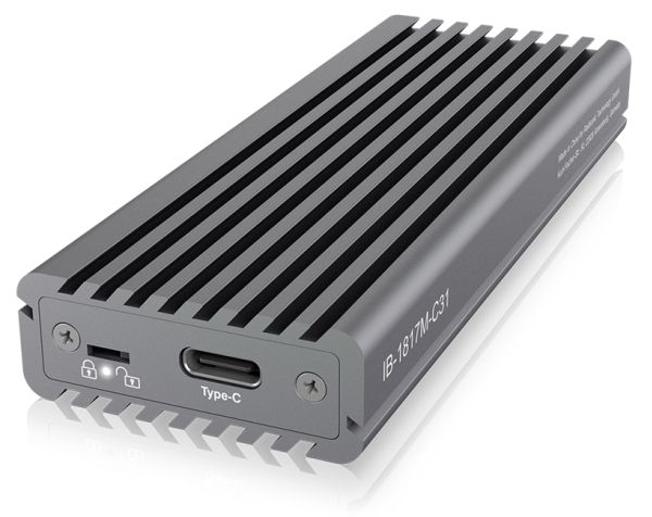 With the help of the external USB 3.1 Type-C enclosure IB-1817M-C31 you can comfortably take one NVMe card with you wherever you go and keep it accessible. It allows access to M.2 SSDs of up to 2 TB with any host computer.