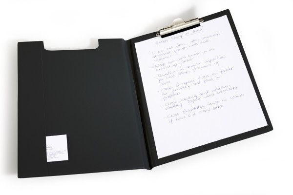 Aus verstärkter Weichfolie mit Innentasche im Vorderdeckel.