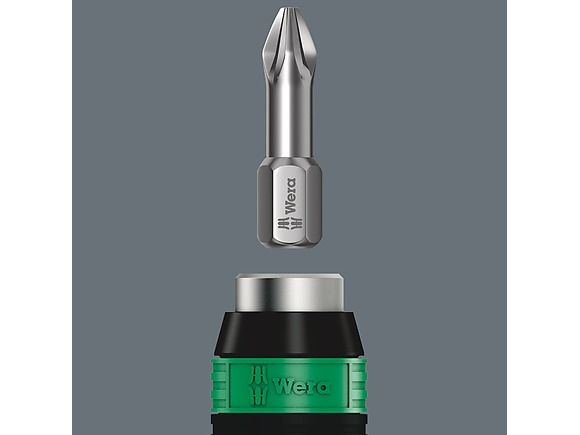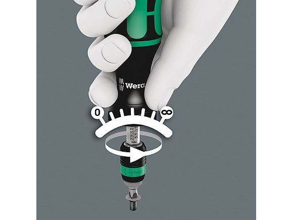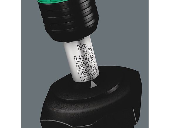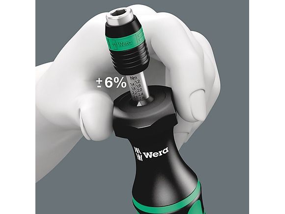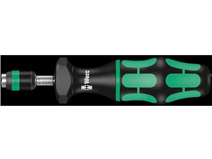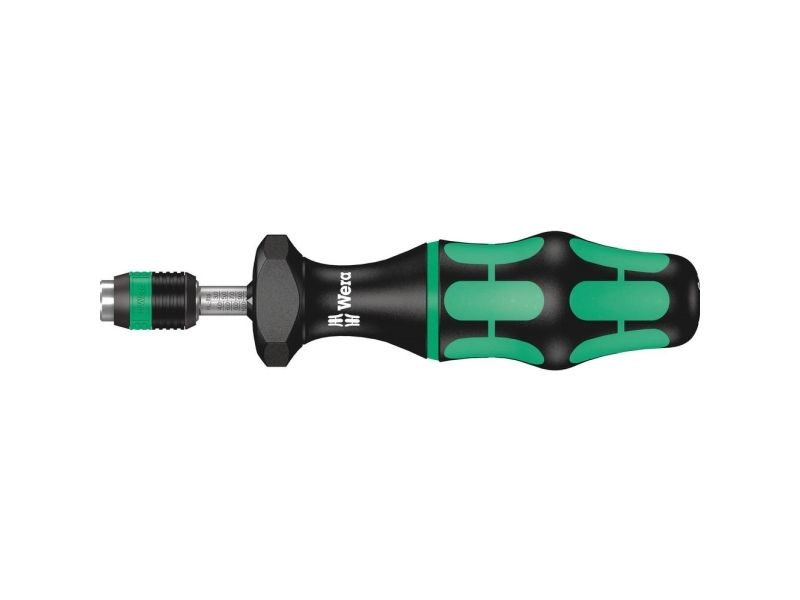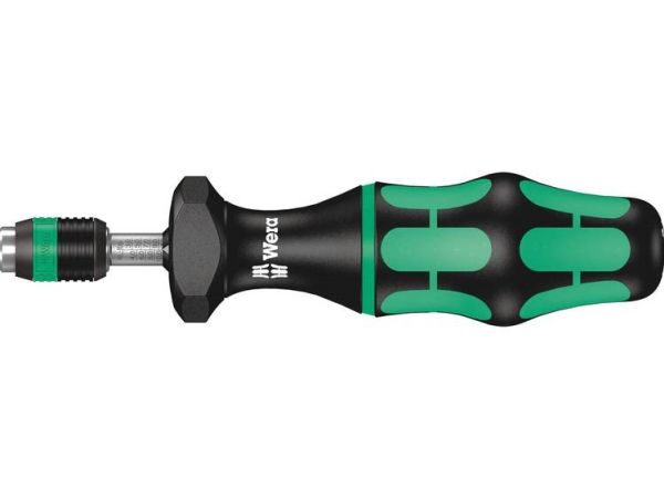 Wera torque screwdriver. Variable torque setting option with highest precision. Simple adjustment of the required torque value without any special tools. Easy-to-read scale value. Rapidaptor quick-release technology for rapid bit change. Unlimited torque to loosen seized screws. Multi-component Kraftform handle with hard and soft zones for high working speeds, whilst being easy on the hand. Suitable for bits with 1/4" hexagon head drive as per DIN ISO 1173-C 6.3 and E 6.3 (ISO 1173).