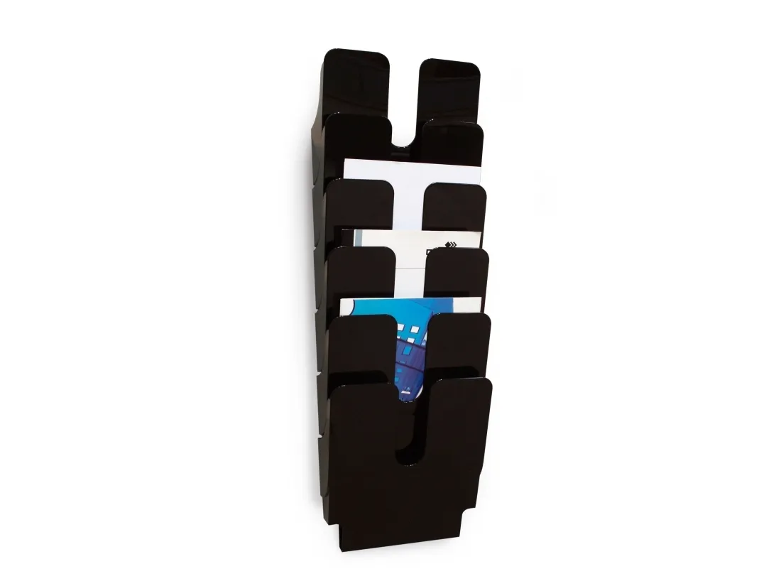 Literature holder in a modern design for displaying and presenting A4 format information includes 6 A4 portrait compartments.