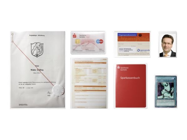 Card holder made of extra-strong, tear resistant polypropylene. Suitable for ID cards, security cards, contact cards and other A7 format documents.