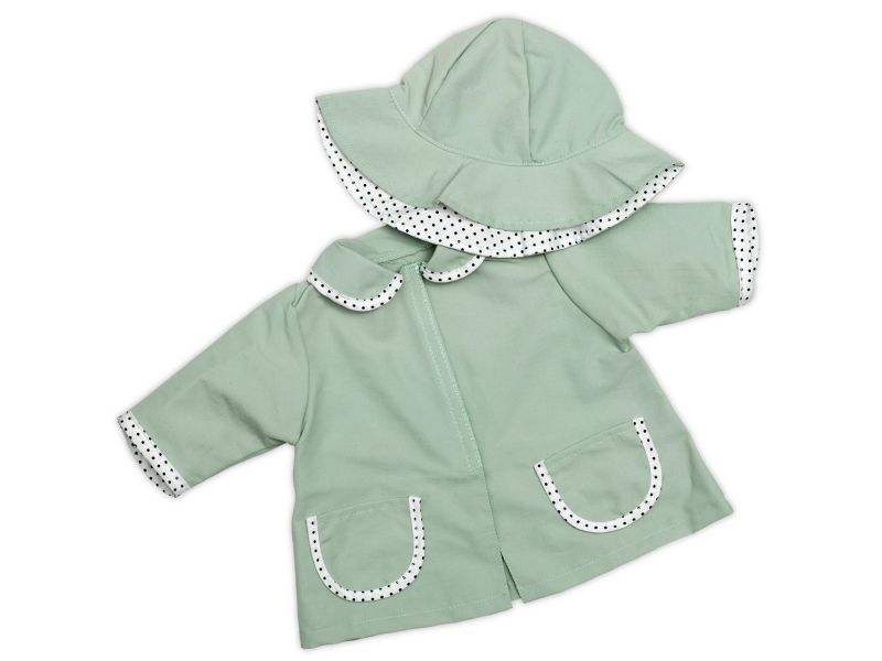 Geh mit Skrållan im Regen spazieren! Mit diesem Regenmantel und dem Regenhut bleibt sie trocken, wenn es regnet. Das Puppenoutfit ist aus wasserabweisendem Stoff in einer schönen Farbe und weißem Innenfutter mit schwarzen Pünktchen, schön und praktisch, damit man bei jedem Wetter zusammen draußen sein kann! Der Regenmantel ist von hoher Qualität und passt Skrållan, der sprechenden Puppe, perfekt. Zu dieser Jacke gibt es auch passende schöne Stiefel. Passt für Puppen von 45 cm.