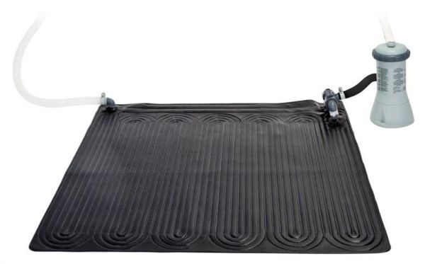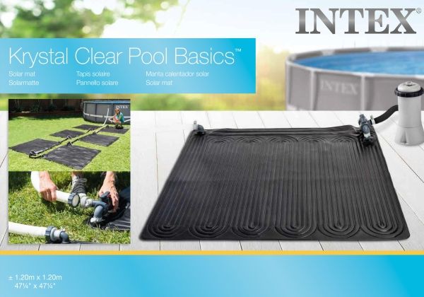 Intex Solar-Pool-Heizmatte Profitieren Sie optimal von der Sonnenwärme Poolbeheizung mit Solarenergie ist eine preiswerte Möglichkeit, das Wasser in Ihrem Pool zu erwärmen. Die Anschaffungskosten sind erheblich niedriger als bei einer Wärmepumpe und außerdem haben Sie so keine laufenden Kosten. Eine ideale Methode, den Pool bei warmem Wetter schneller zu erwärmen