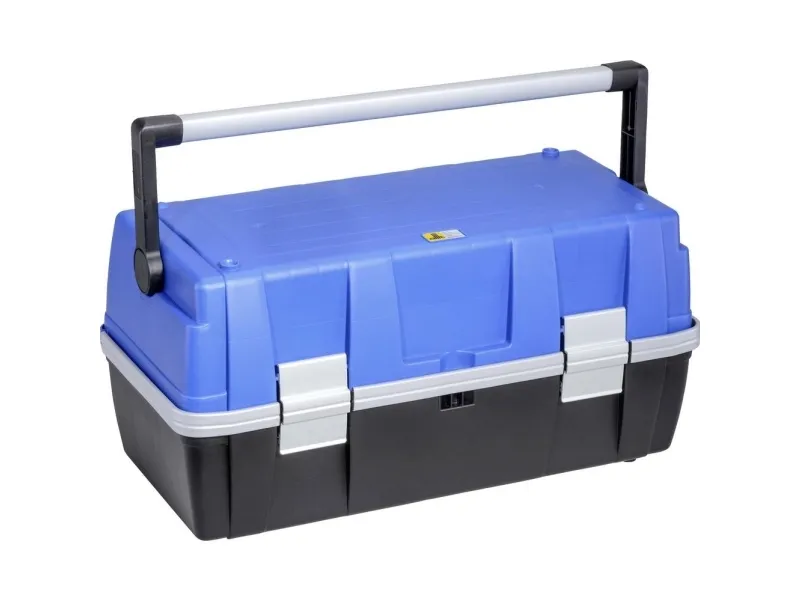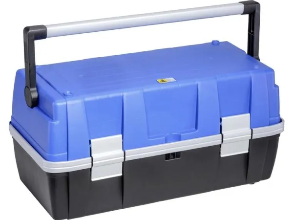 Professioneller Werkzeugkoffer McPlus Proalu C222 cantiltabletts und 3 innenliegende Kleinteile-Sortimentskästen - stabile Alu-Bügelschlösser - ergonomischer Alu-Bügelgriff für sicheren Transport - mit einem Standard-Vorhängeschloss entriegelbar.