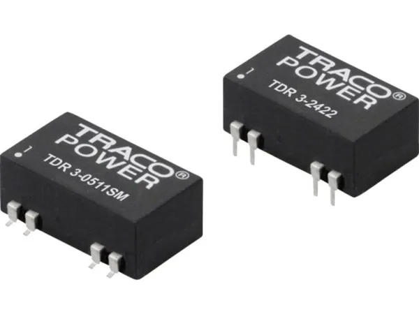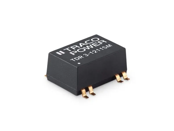 DC/DC-Wandler, Serie TDR 3Kompakter 3 W-Wandler im SMD-Gehäuse, I/O-Isolation 1600 V/DC, geregelte Ausgänge, 2:1-Eingangsbereich, Dauerkurzschlussschutz.