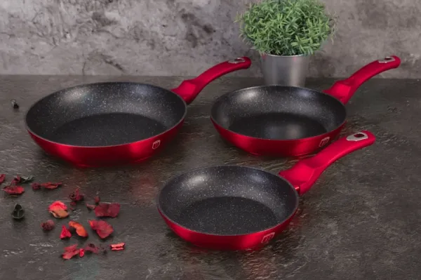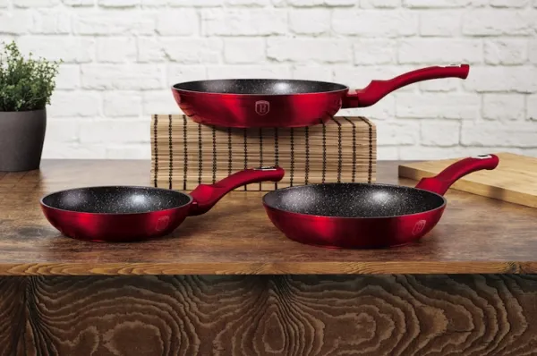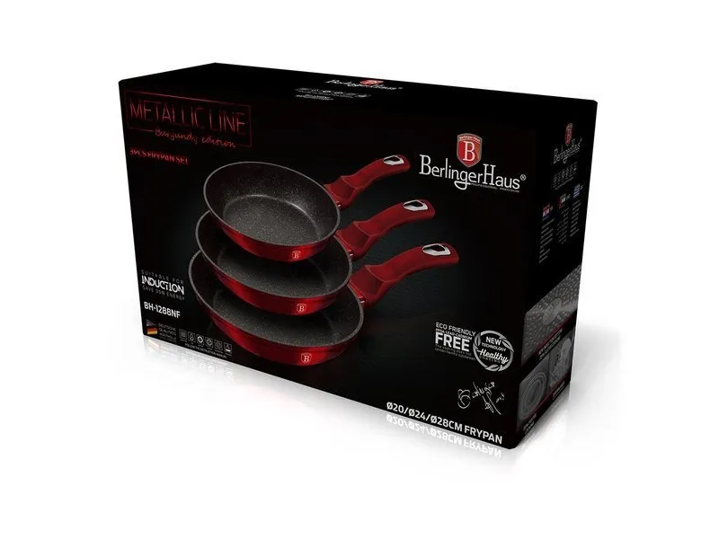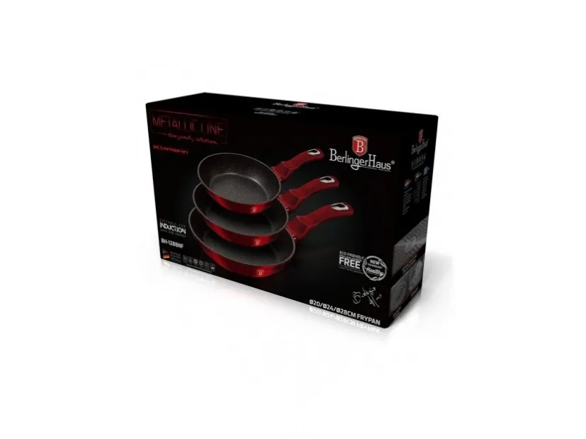 Berlinger Haus BH/1288NF. Type: Frying set, Product colour: Burgundy, Material: Aluminium. Frying pan diameter: 20 cm, Frying pan 2 diameter: 24 cm, Frying pan 3 diameter: 28 cm. Number of products included: 3 pc(s), Number of frying pans: 3 pc(s)