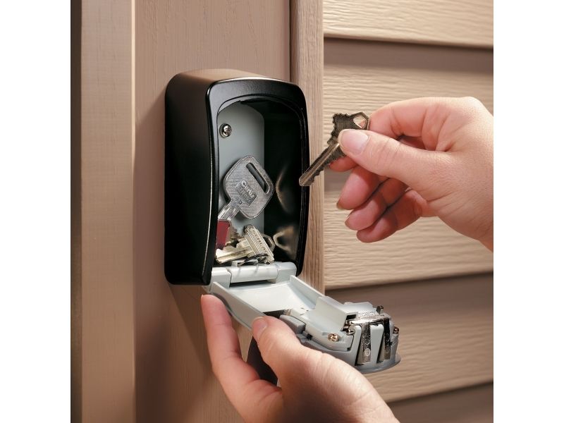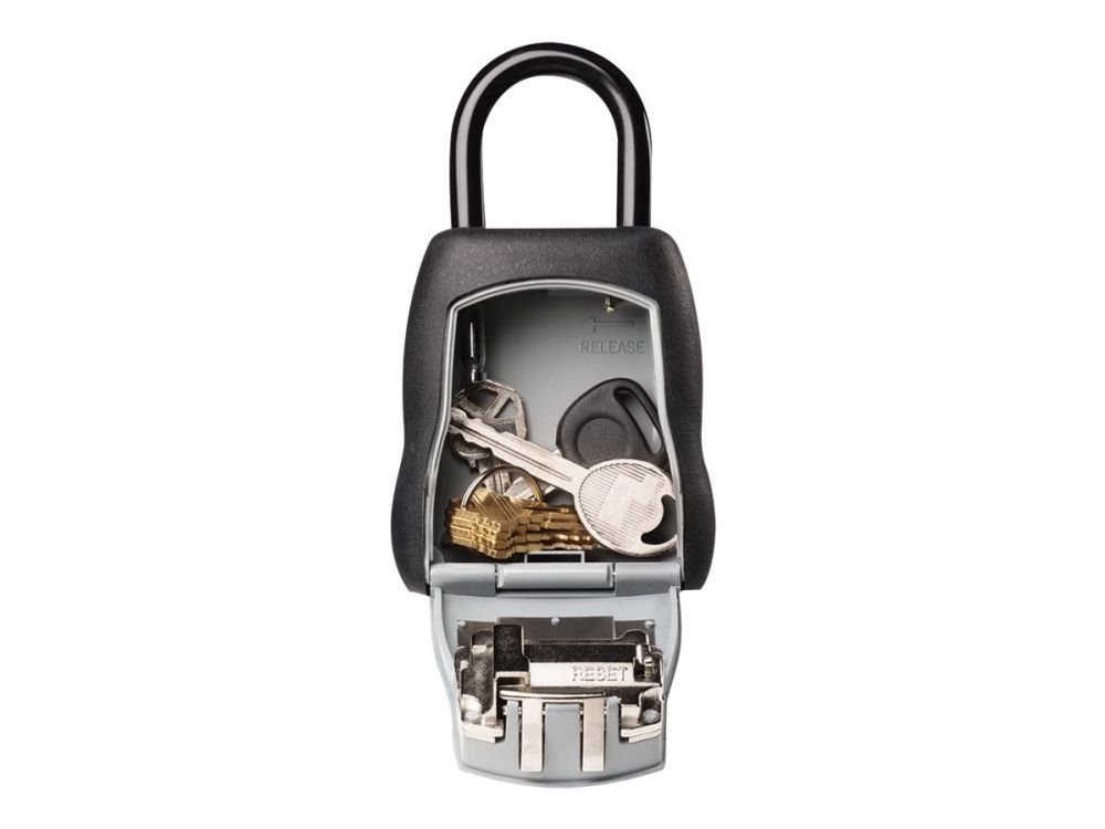 - Key Storage compartment holds over 5 house or car keys - 4-digit Resettable Combination - Reinforced Body to withstands hammering and sawing - Molded bumper and vinyl coated hardened steel shackle - For added security, consider installing Select Access in a discrete location