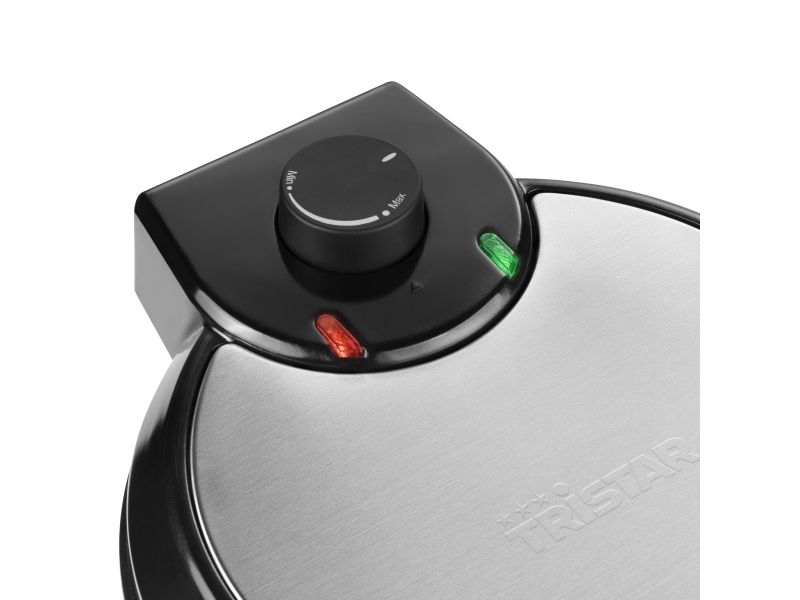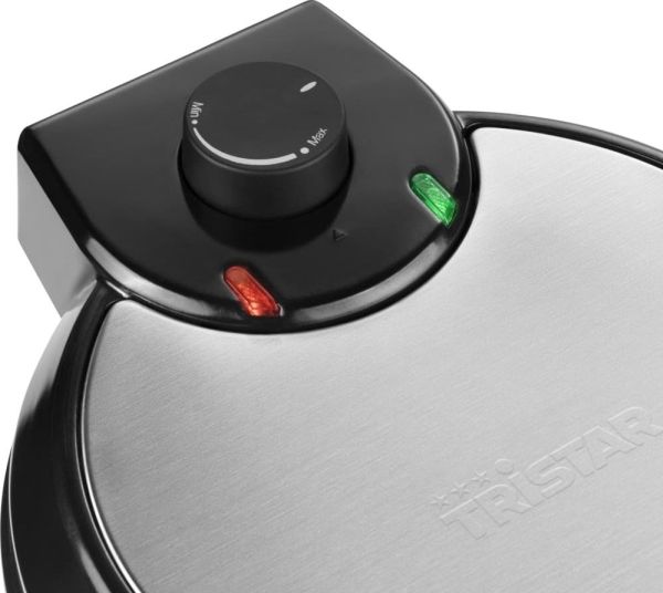 Elegantes Design Das Tristar-Waffeleisen ist kompakt und lässt sich bei Nichtgebrauch entweder horizontal oder vertikal wegstellen. Das Edelstahlgehäuse verleiht dem Waffeleisen ein luxuriöses Erscheinungsbild. Dank der Kontrolllampe können Sie sofort sehen, ob das Waffeleisen eingeschaltet ist und der Teig eingegeben werden kann.