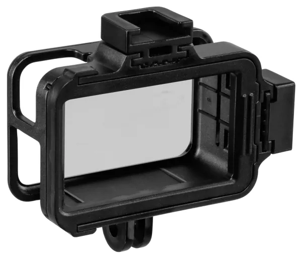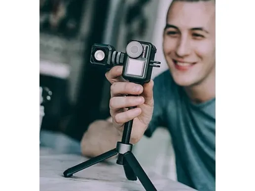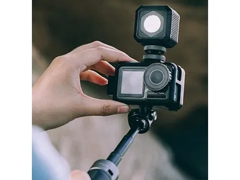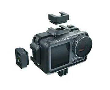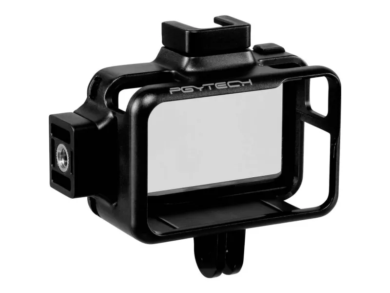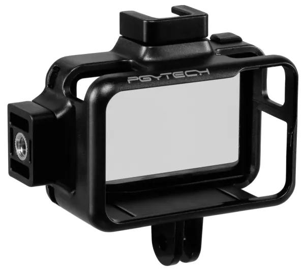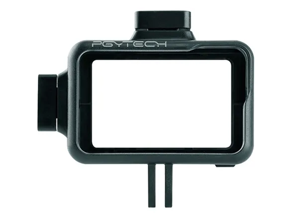Specially designed for OSMO Action, PGYTECH OSMO Action Camera Cage equips an action camera interface at the bottom of the cage and connects any shooting device with a universal interface, such as a tripod or selfie stick. There are two cold shoes on the top and side of the cage, respectively, that offers access to the camera, light, and microphone. A detachable cold shoe with 1/4'' thread connects the cage with a tripod in the vertical or horizontal direction, which allows for free switching between shooting models. The height of the top shoe can be increased with the help of the 1/4'' thread cold shoe, so as to make sure the connection of a camera light will not influence the function of the camera. Open space is reserved on the cage's side for power delivery, connections with microphones, or to replace a storage card.