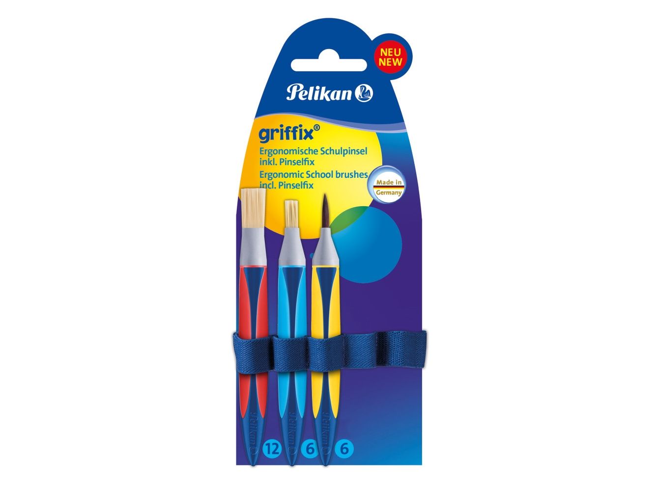 Pelikan griffix Schulpinselstarter-Set 3er 12er Borste, 6er Borste, 6er Haar Synthetik + Pinselfix auf Trägerkarte