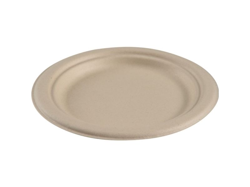 Umweltteller und -schalen sind aus Zuckerrohr gefertigt. Die Beschaffenheit des Materials macht das Produkt steif, wodurch die Platten stabil sind. Darüber hinaus sind sie zu 100 % kompostierbar.