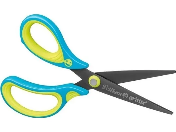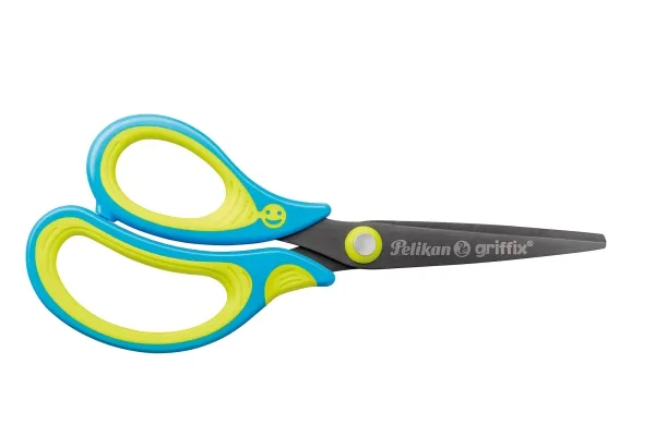 Die ergonomische griffix Schulschere spitz ist 3 x härter als Stahl durch eine Titannitrid-Beschichtung. Der ergonomische Griff besteht aus hochwertigem ABS Kunststoff und ist latexfrei. Wie beim beliebten Schreiblernsystem sorgt das lachende Griffix-Gesicht für die richtige Handhaltung. Mit Namensschild. Pelikan gewährt auf die griffix Schulschere 25 Jahre Garantie!