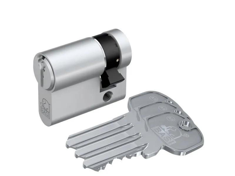 ProfilhalvcylinderMessing, mat fornikletDen robuste og sikre AS profil-halvcylinder serie fra BASI, kan anvendes til garageporte, kombinationslåse, nøglekontakt eller hængelåse. Låsecylinderen består i Kern af 8 direkte låseelementer på 2 forskellige niveauer og sørger dermed for mere sikkerhed. Halvcylinderen af høj kvalitet leveres med 3 nøgler. Med det forskellige lukkende system passer kun de 3 medfølgende cylindernøgler. Desuden er der altid mulighed for at lave erstatningsnøgler ved den regionale nøgletjeneste. As-halvcylinder kan anvendes som ideel lås til et husindgangsområde. Den massive cylinder af messing kommer med en udboringsbeskyttelse, som forhindrer/vanskeliggør boring af mulige indbrudstyve. Ved fremstillingen af BASI-cylinderen er der lagt vægt på kvaliteten. Fremstilling og kontrol sker i henhold til din standard 18252:2006-12.